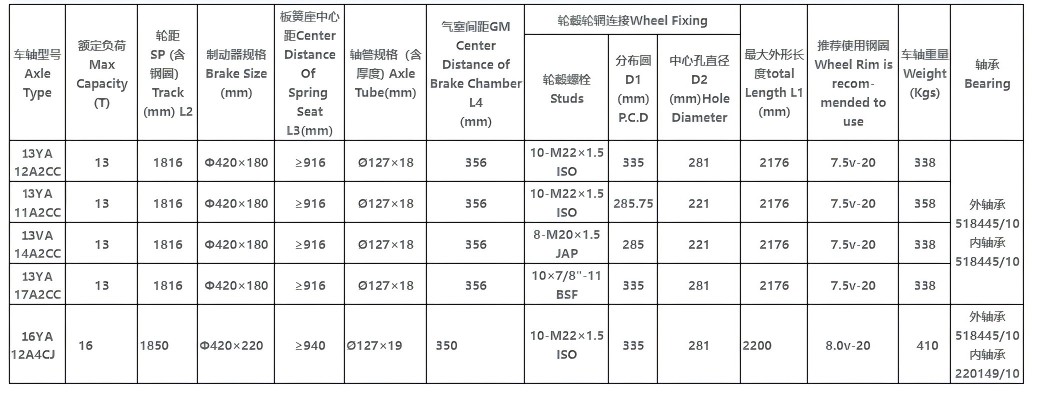 Бұл 13T стандартты американдық ось. Оңтайландырылған дизайн арқылы, ол өз салмағын азайтып, күш-қуатсыз жеңіл жетеді. 13T стандартты ось салмағы 330 кг құрайды. Бұл күшті және берік, біліктің жалпы механикалық қасиеттерін жақсартады және шаршауға төзімділік пен қаттылыққа ие.